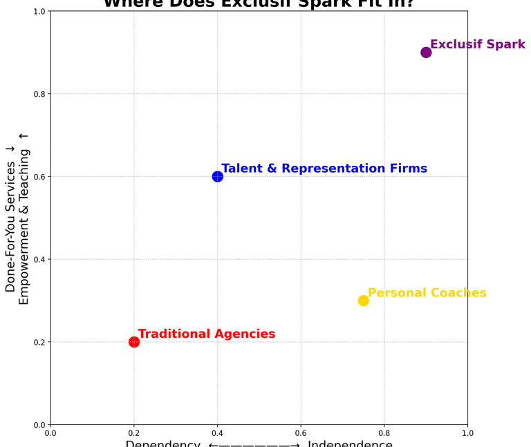 Exclusif Spark is different. We don’t just provide a service or package; we empower you to become the CEO of your own vision. With us, you gain clarity, skills, and systems to guide your brand and sustain your success, whether you have a team or not.
