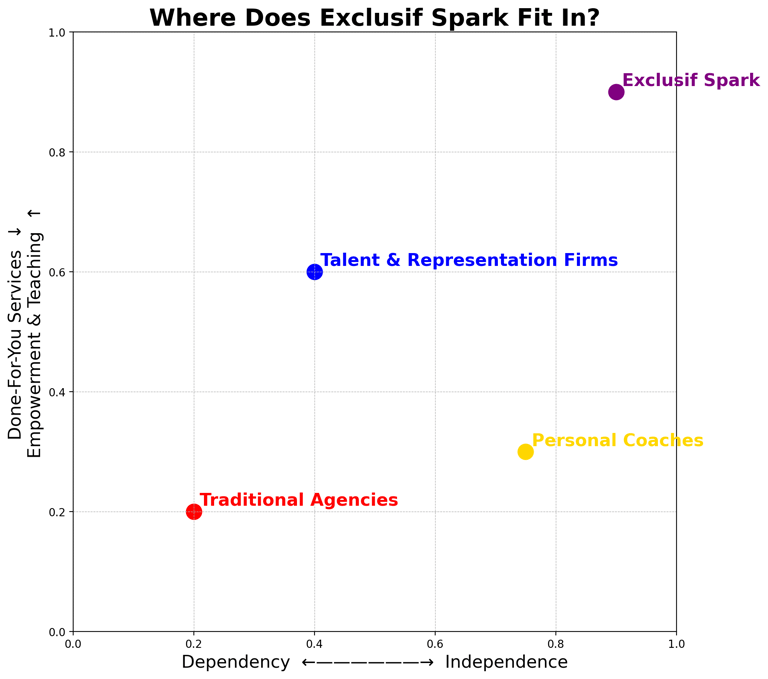 Each approach has its place. Exclusif Spark uniquely combines empowerment and independence.